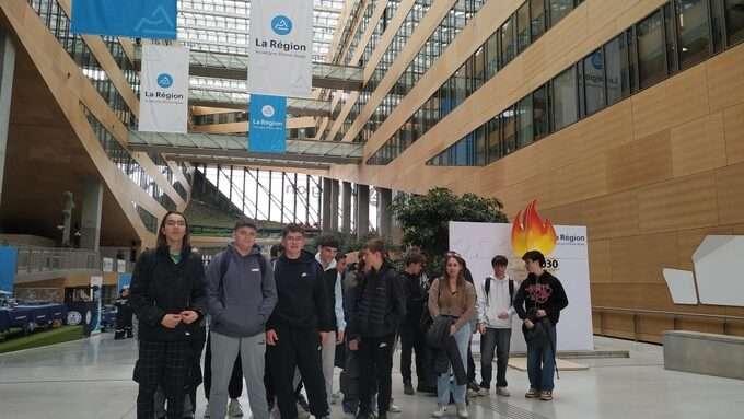 Le vendredi 21 mars 2025, 22 élèves de la classe de Troisième Prépa-métiers se sont rendus à Lyon, voyage en grande partie financé par la région Auvergne Rhône Alpes dans le cadre du parcours citoyen. La classe a d’abord visité les locaux du Conseil Régional à Lyon dans la matinée. Une guide a présenté au groupe les locaux dont la conception avait été envisagée dans une démarche durable (matériaux, isolation, chauffage…). Les parallèles étaient nombreux avec notre lycée qui fut construit quelques années avant l’Hôtel de Région. Cette visite fut aussi l’occasion pour les élèves de revoir les compétences de cette collectivité territoriale qui gère une partie du quotidien de ses citoyens (gestion des lycées, de la formation professionnelle, des transports régionaux, des aides aux entreprises…). Enfin, la classe a pu assister à une conférence donnée par la Marine nationale dans l’hémicycle. Les élèves ont pu suivre un débat sur les motivations de cinq militaires de carrière à qui l’animateur avait demandé deux mots pour résumer les qualités requises pour leur profession. Une chance pour nos élèves (qui préparent leur orientation) d’avoir assisté à cet échange dans ce lieu démocratique. Pour le déjeuner, ils se sont rendus sur le toit terrasse du Musée des Confluences. Leur professeur d’histoire-géographie leur a expliqué ses attentes pour réaliser un croquis géographique du quartier Confluence à partir d’éléments du paysage urbain qu’ils pouvaient observer depuis ce point de vue panoramique de Lyon. L’après-midi s’est terminé dans le musée du cinéma et des miniatures où la classe a pu découvrir des objets utilisés dans des films (lunettes d’Harry Potter, baguette de Ron, masques de Dark Vador et de Chewbacca, C-3PO, Chucky, gant d’Iron Man…) ainsi que des maquettes époustouflantes de réalisme de décors de cinéma.
